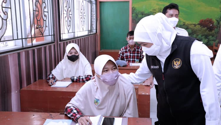 TIMES Sragen/Gubernur Khofifah saat meninjau PTM terbatas. (FOTO: Dok.Humas Pemprov Jatim)