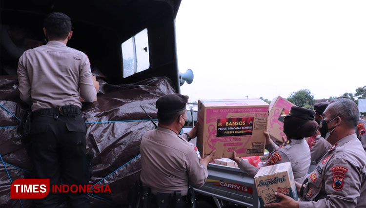 Kapolres Sragen, AKBP Yuswanto Ardi, mengatakan bantuan yang berhasil dikumpulkan Polres Sragen dari donasi warga, anggota, dan Bhayangkari Polres Sragen.