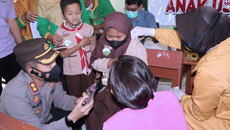 Kepolisian Polres Sragen terus berupaya melakukan vaksinasi. Bahkan, Polres Sragen rela berbagi jajanan dan mainan guna mendorong anak usia 6-11 tahun di Kabupaten Sragen ...