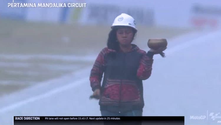 TIMES Sragen/Raden Rara Isti Wulandari, sang pawang hujan saat Sirkuit Mandalika, Lombok Tengah, NTB, Minggu (20/3/2022) (FOTO: t-2.tstatic.net)